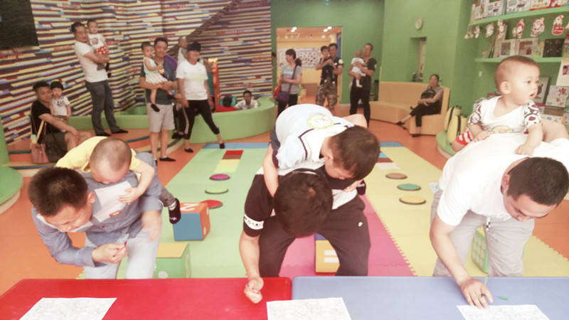 亲们肯定疑惑了,这时候爸爸带着宝宝们在做游戏,那妈妈们呢?