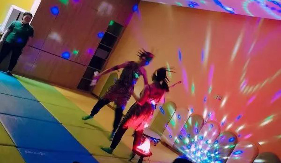 发现有两位原始人用自己最擅长的舞蹈来欢迎大家,带领大家一起载歌载舞。