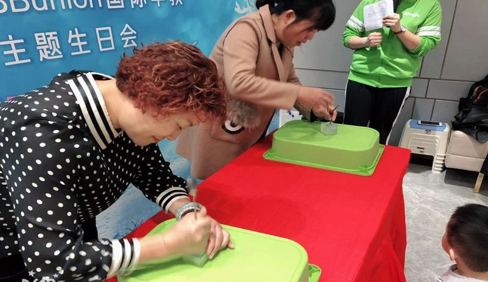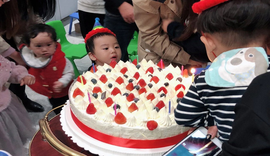 生日会的最后,BBunion的老师们为宝贝们带来了美味的食物。冰雪公主将生日蛋糕带给了宝贝。大家默默地许下了自己的生日愿望,开始了今晚的冷餐盛宴。