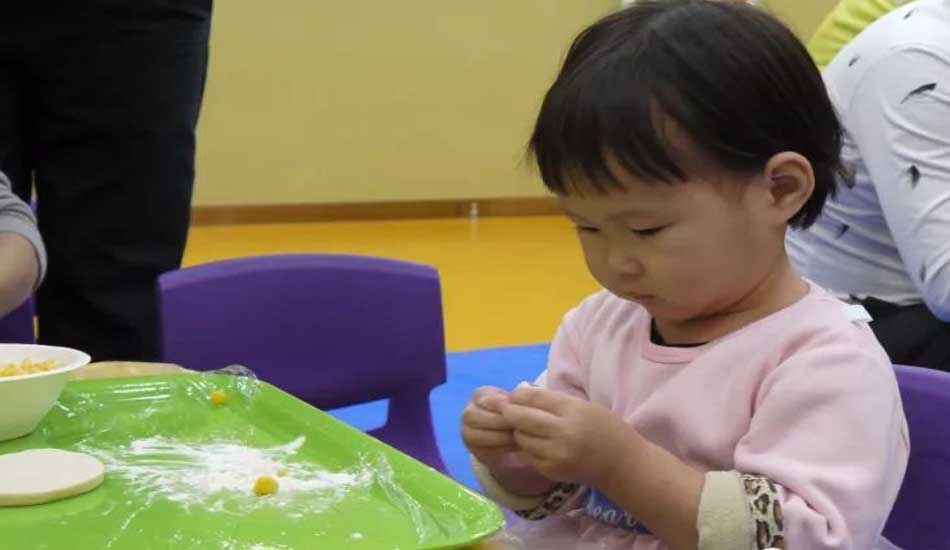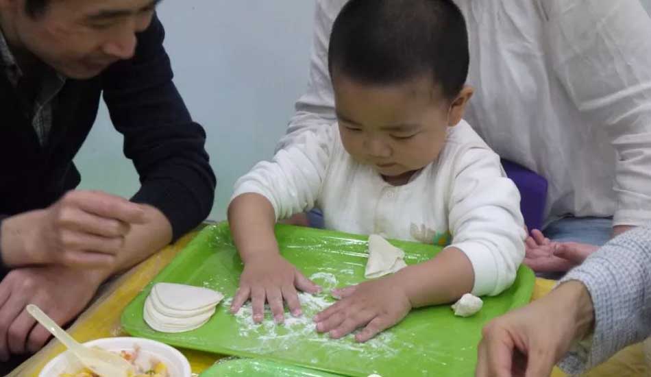 宝贝认真包饺子的样子